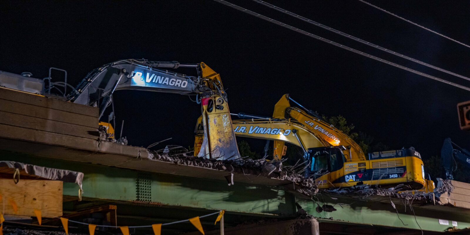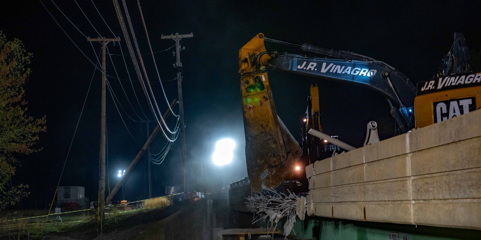 We overcame these challenges by tapping into the collective skills and experience that our staff has gained from similar projects. Through proper advance planning down to half-hour increments, we were able to perform the work safely and efficiently. Prior to the weekend bridge replacement, our survey section measured twice to ensure all bridge components were fabricated according to the plans. In addition, close coordination with subcontractors ensured smooth collaboration on site and allowed the project to move forward without conflict.