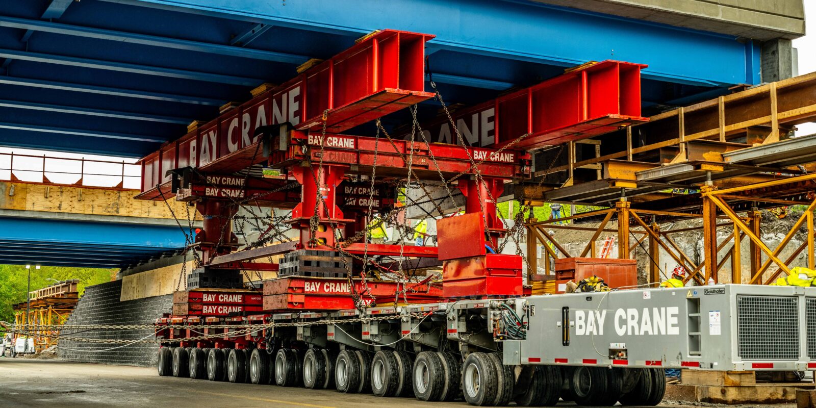 One of the challenges we encountered on this project was maintaining all lanes of traffic for the duration of the bridge build. We accomplished this by building the bridge superstructure on temporary supports adjacent to the existing bridge. Transporting the completed bridge decks with SPMTs added further difficulty, as strict timelines and scheduled road closures left no room for delay. We overcame this by carefully planning each step of the move, ensuring the entire bridge replacement (from demolition to final bridge paving) was completed within the allotted time so the roads could safely reopen as scheduled.